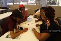Some of the objectives of the program were as follows: Ignite creative and innovative thinking ; Create networking opportunities ; Encourage collaborations & Create platform / opportunities for local poets and visual artists. These are the following participants that took part in the DCMA program: (Poets) Ntaoleng Labane , Siphelele Khaphetshu, Lesego Mongale, Loyiso Dongo, Monicca Mashele, Mxolisi Cassius Mabuya, Tshepho Mpebe, Nontobeko Msimango ; (Digital Artist) Eitan Louw ; (Visual Artists) Mzwandile Mboyi, Teboho Mokhothu, Xolani Mkweta, Phenyo Pino and Gilbert Moilwa. We might be having a second exhibition in Bloemfontein where we exhibit these artworks so be on the look out for that, and we'll definitely keep you informed in due time. We really want to thank the Adelaide Tambo Public Library for providing the space for these artists to work together in collaboratively creating new themed work. The workshops were definitely a great learning & working experience.