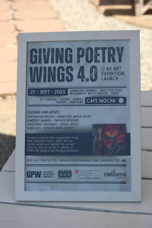 We're taking Giving Poetry Wings 4.0 to different venues across Harare and Zimbabwe, with monthly exhibitions that will grow and transform. Each iteration will feature new additions to the AR experience, ensuring there's always something fresh to discover. This is a living exhibition - one that evolves as it travels, deepening with each encounter.