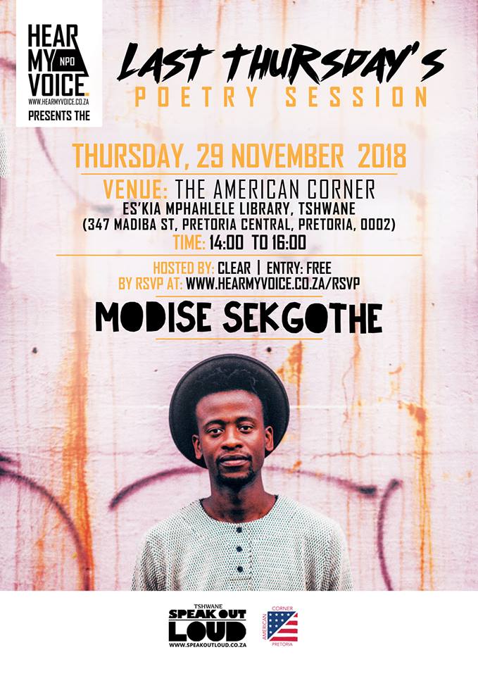 You can listen to the first poem which shares the same title as the album "Meera Me" on SoundCloud . For those that may not be familiar with his previous work, you can stream his first EP "DIPOKO tsa DIPOKO" here. Qhakaza Mthembu from Word n Sound managed to interview Modise and Lerato quite a while back, so you can definitely peep that article to get more depth on what the EP is all about and what inspired it (Read the interview here). My favourite poems from the album are "Our Home", "Apart", "Alchemist of Agony" and "Relationship wrecked". It's really dope how the ambient melodies perfectly compliment his Spoken word, which is something he's fond of, and made s of in his first EP. You can catch Modise at the American corner on the 29th of November, at "Last Thursday's Poetry Session" in Pretoria.